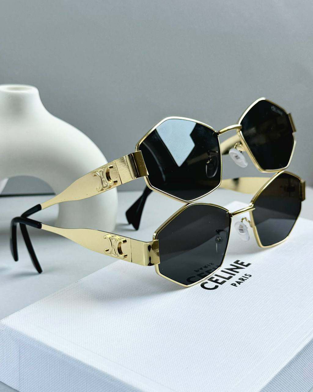 عینک آفتابی سلین فلزی چند ضلعی مشکی طلایی کد 151...