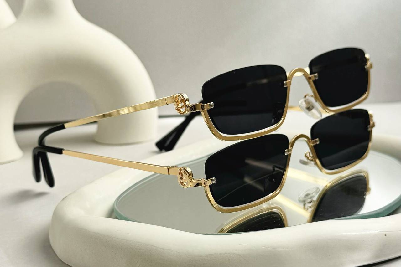 عینک آفتابی زنانه گوچی مستطیلی مشکی طلایی کد 201...