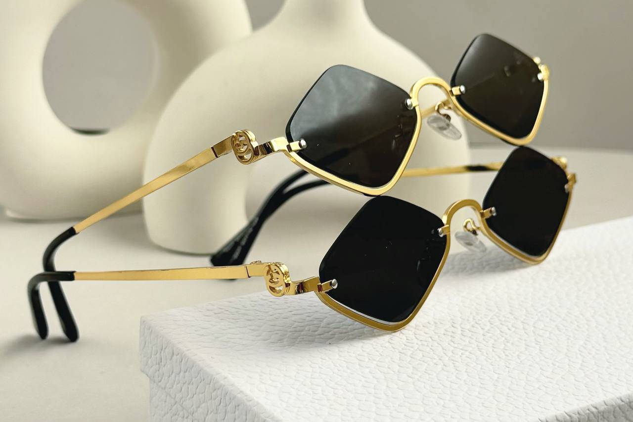 عینک آفتابی زنانه گوچی لوزی مشکی طلایی کد 204...