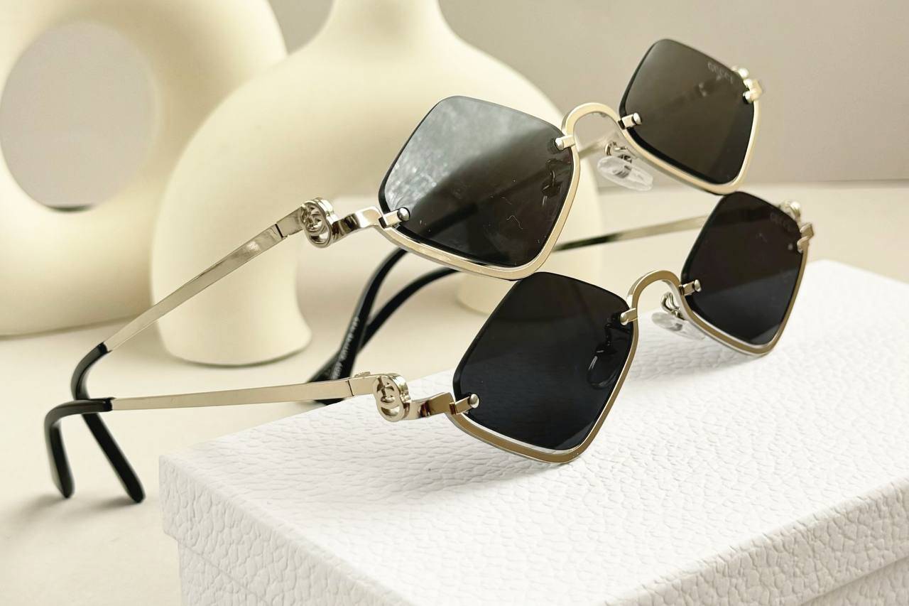 عینک آفتابی زنانه گوچی مستطیلی نقره ای کد 201...