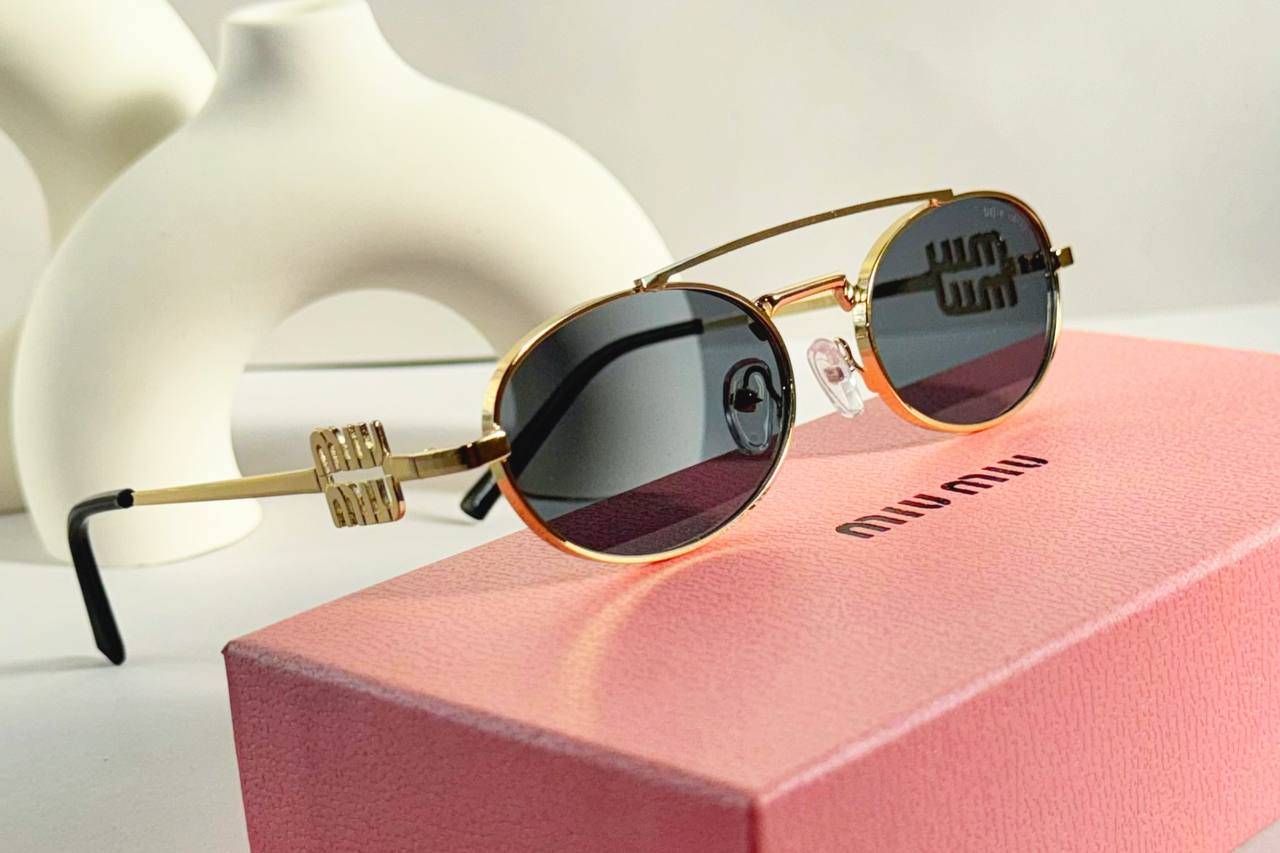 عینک آفتابی زنانه میو میو مشکی طلایی کد 205...