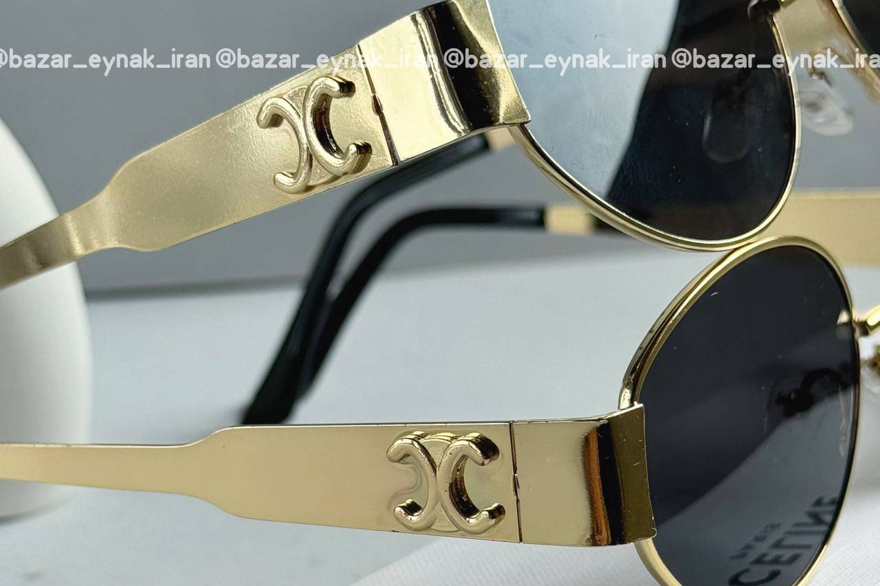 عینک آفتابی سلین فلزی بیضی مشکی طلایی کد 152