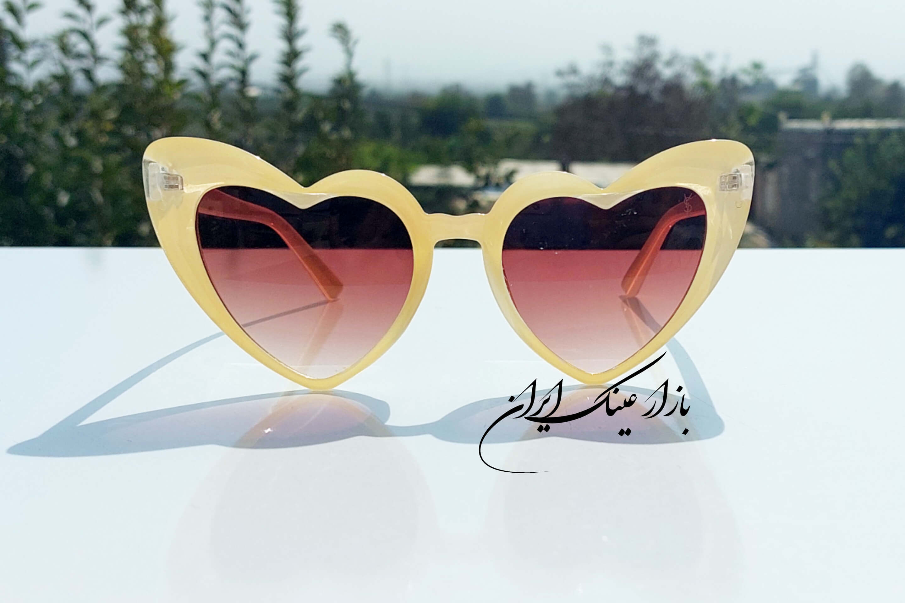 عینک قلبی رنگ کرمی کد 33