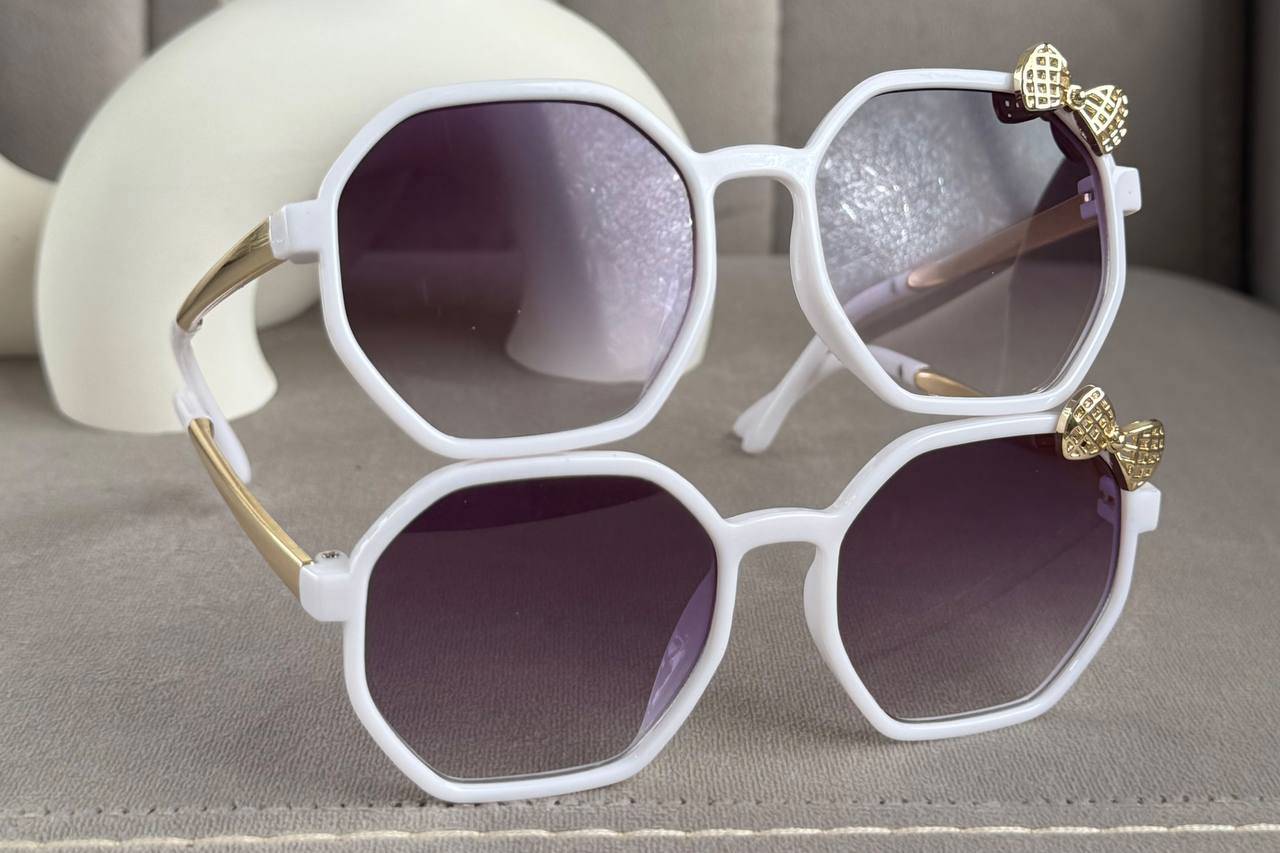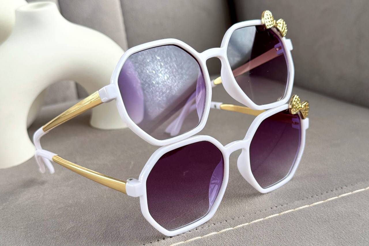عینک آفتابی بچگانه چندضلعی پاپیون سفید