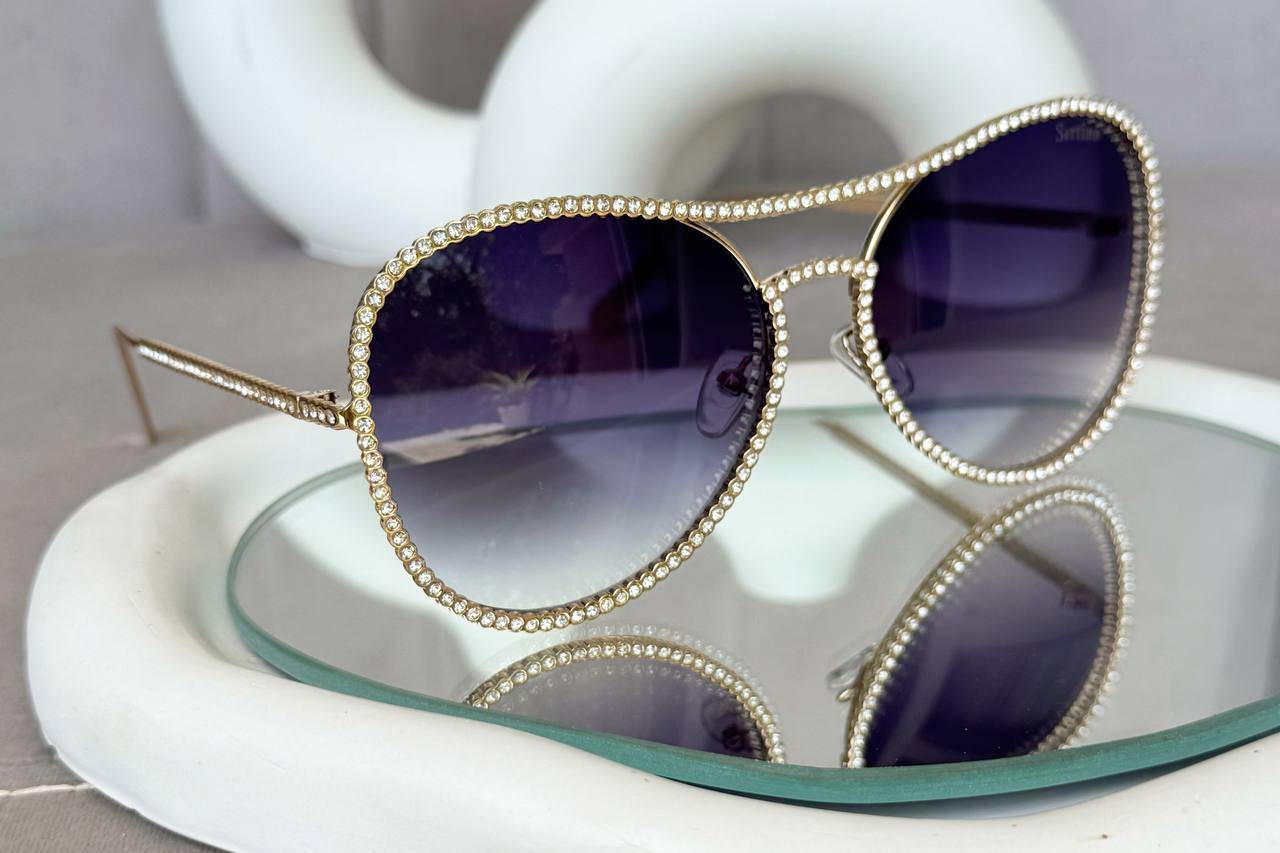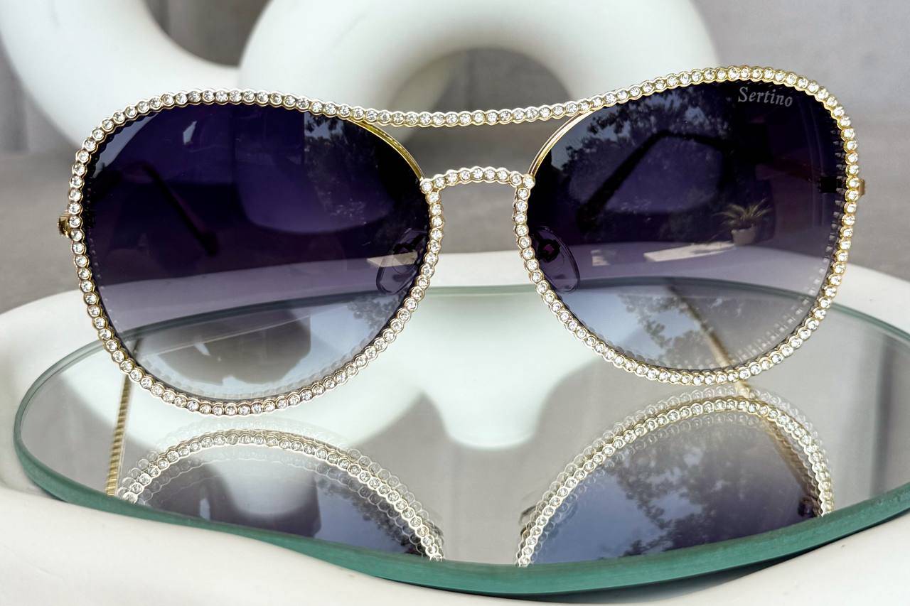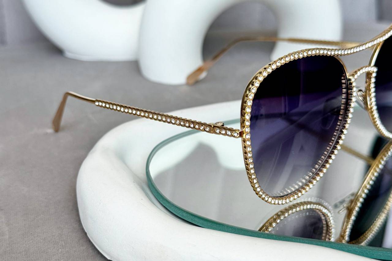 عینک آفتابی زنانه خلبانی نگین دار مشکی کد 253