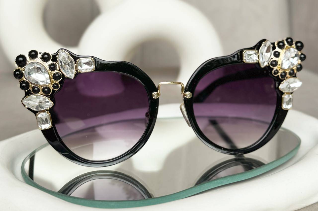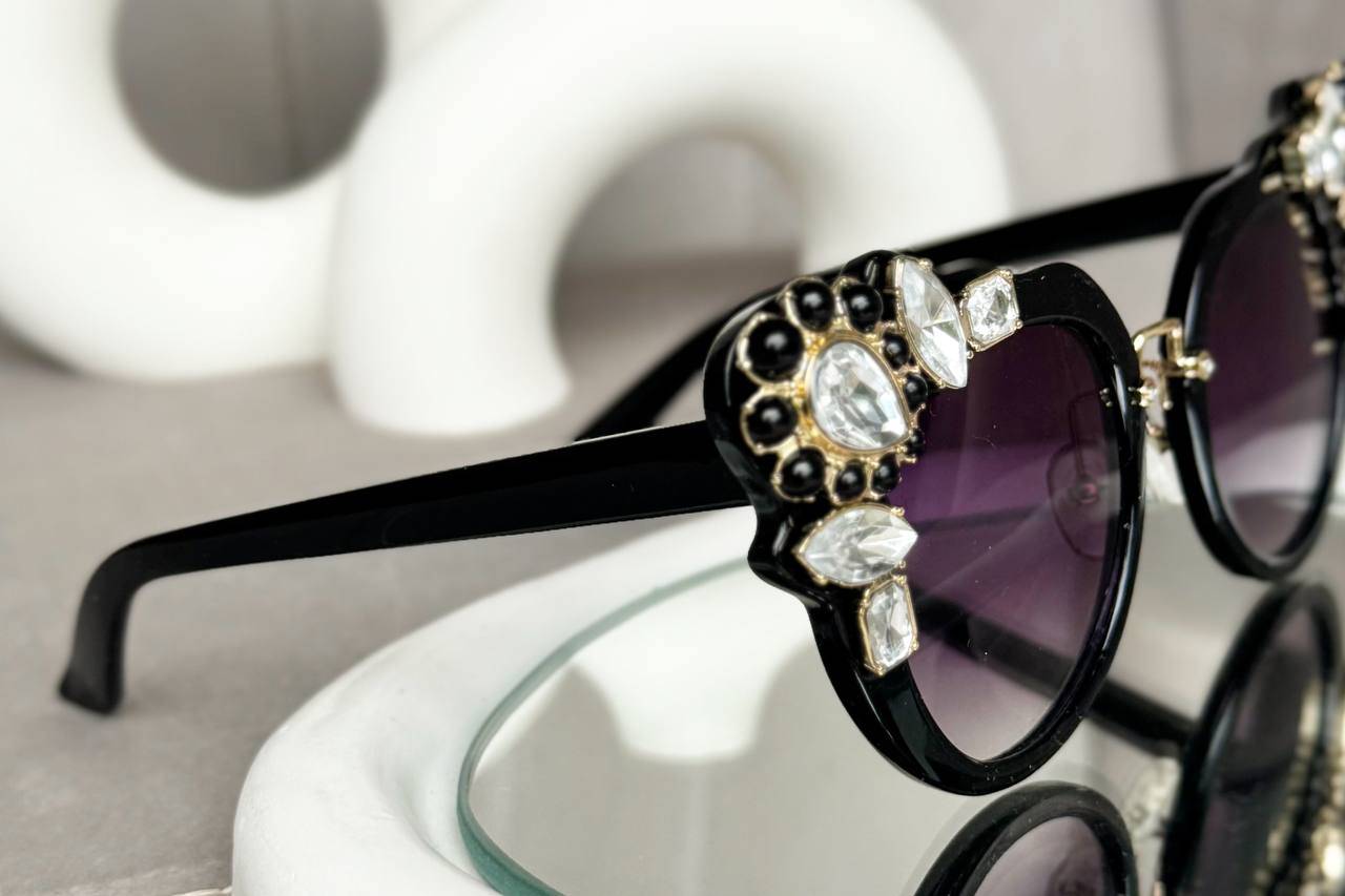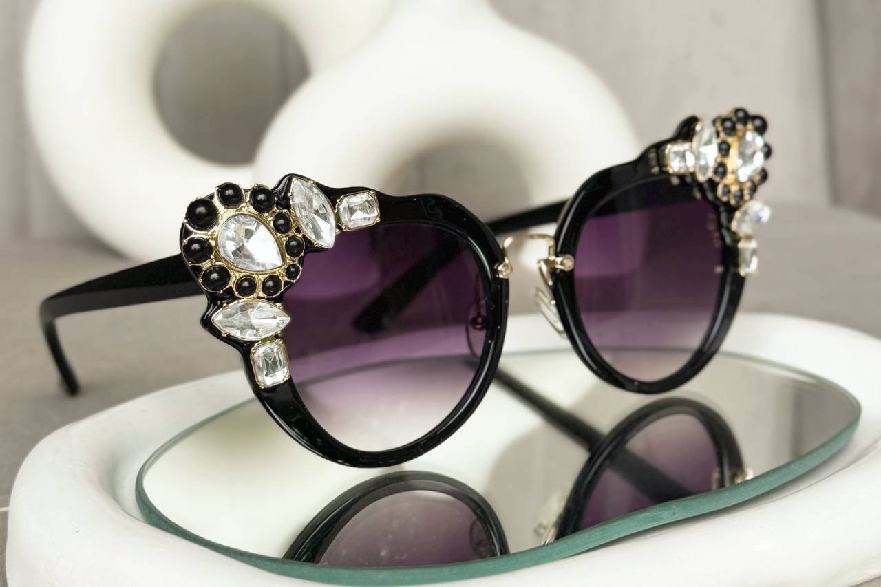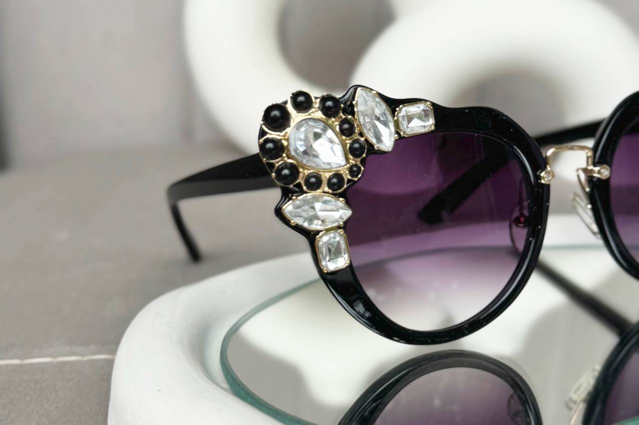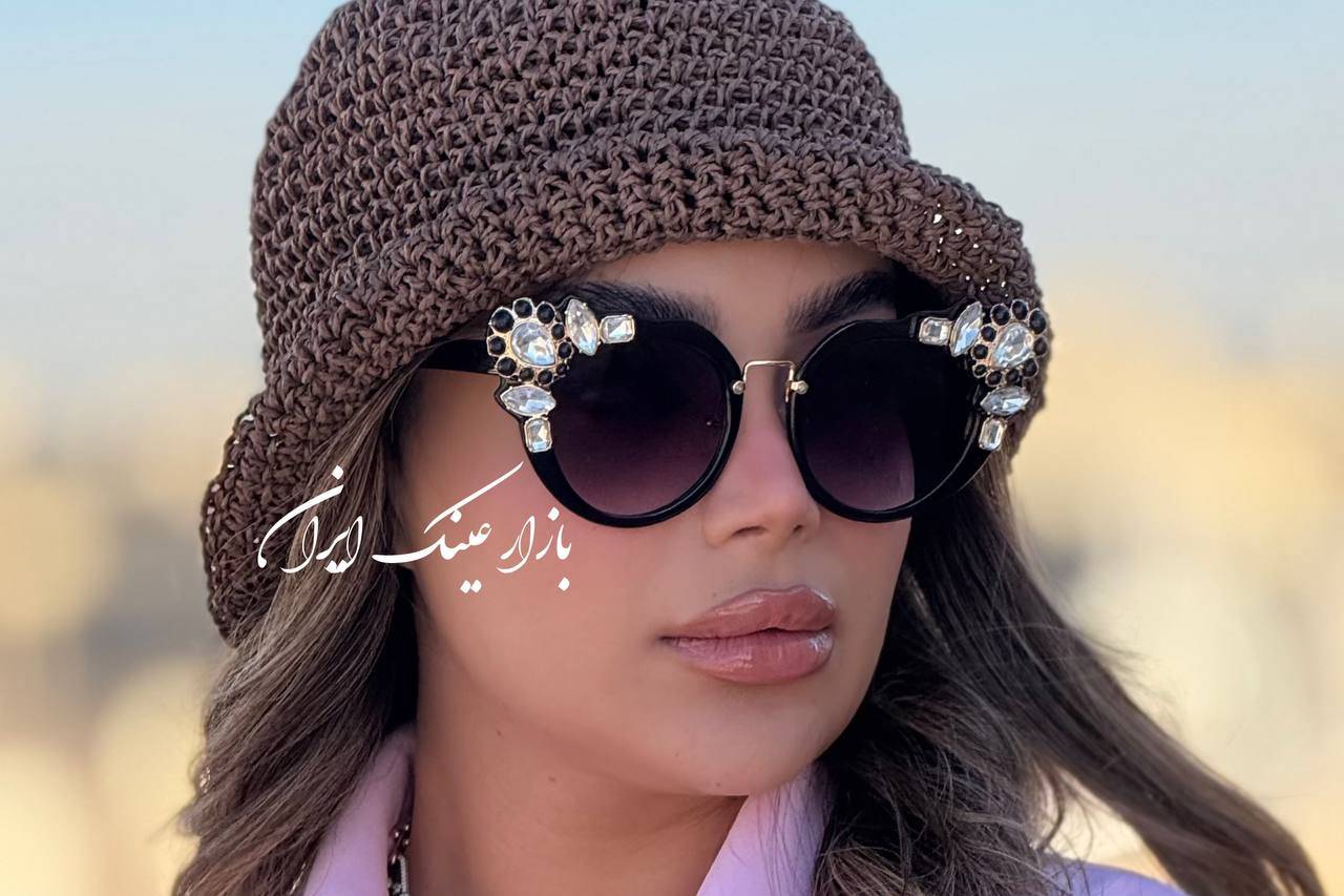 عینک آفتابی زنانه نگین دار مشکی کد 254