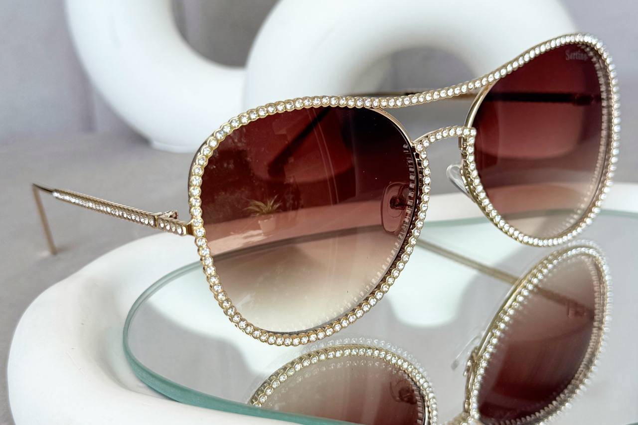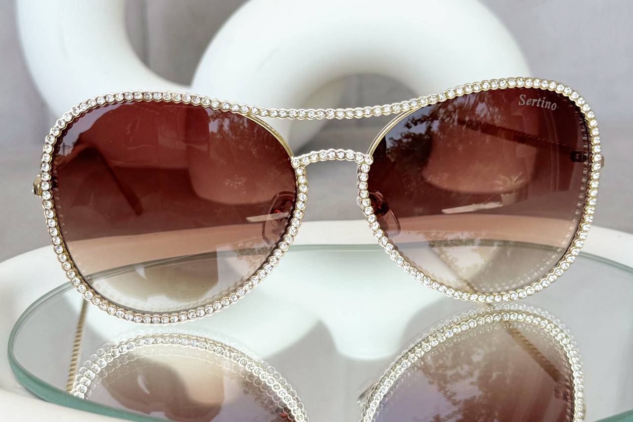 عینک آفتابی زنانه خلبانی نگین دار قهوه ای کد 253