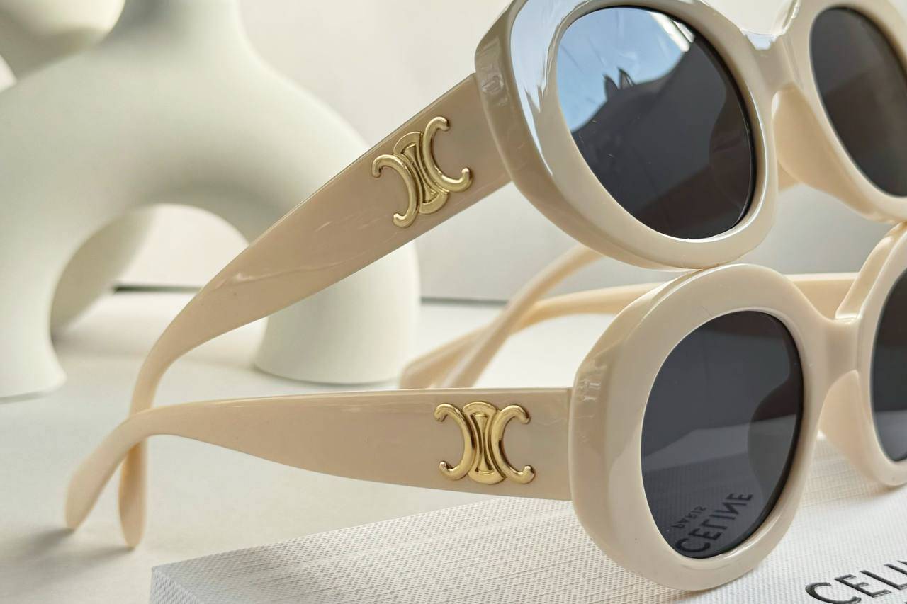 عینک آفتابی زنانه سلین بیضی کائوچو کرمی کد 203