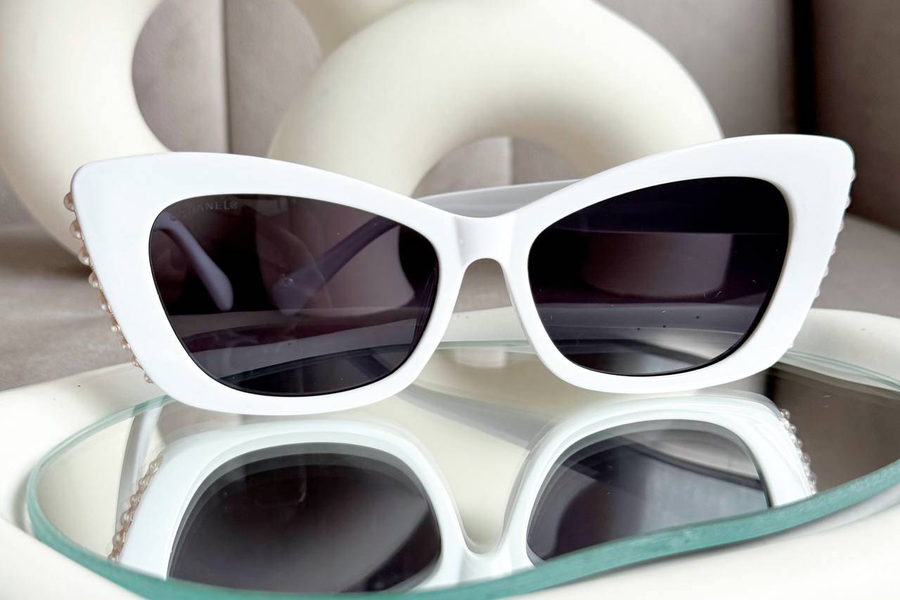 عینک آفتابی زنانه شنل گربه ای مرواریدی سفید کد 236